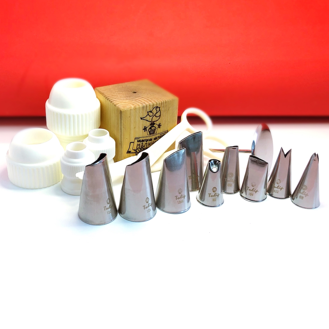 Кондитерские насадки в наборе маркированы номером и лого Ateco или Tulip, сделаны в Корее и имеют гарантию качества: